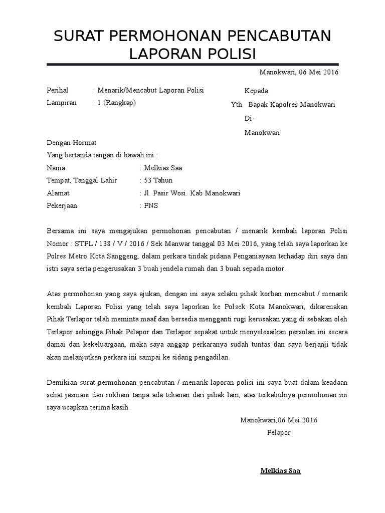Prosedur Dan Contoh Surat Permohonan Pencabutan Laporan Perkara Pidana Di Kepolisian Bangdidav Com