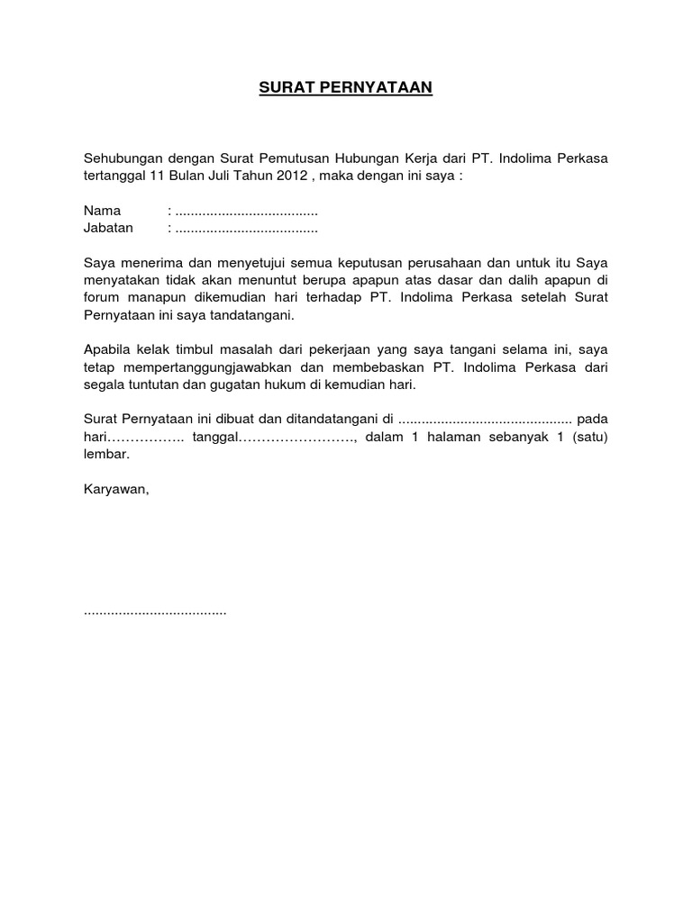 30 Contoh Surat Pemutusan Hubungan Kerja Phk Dengan Berbagai Alasan