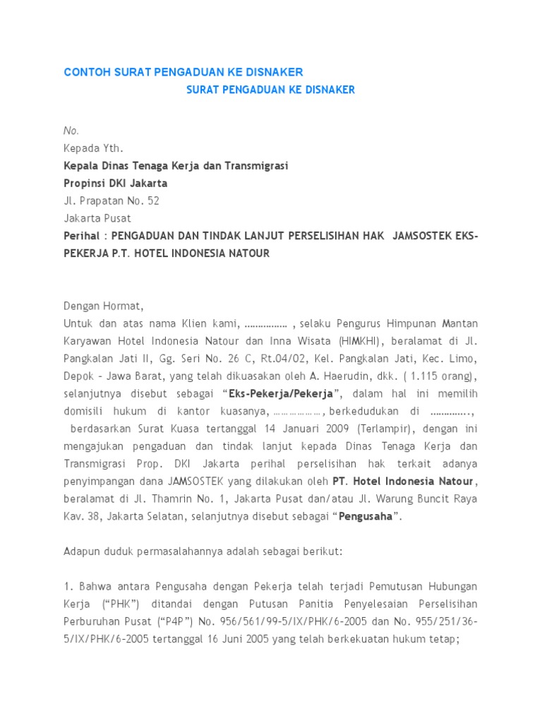 Contoh Surat Pengaduan Ke Disnaker