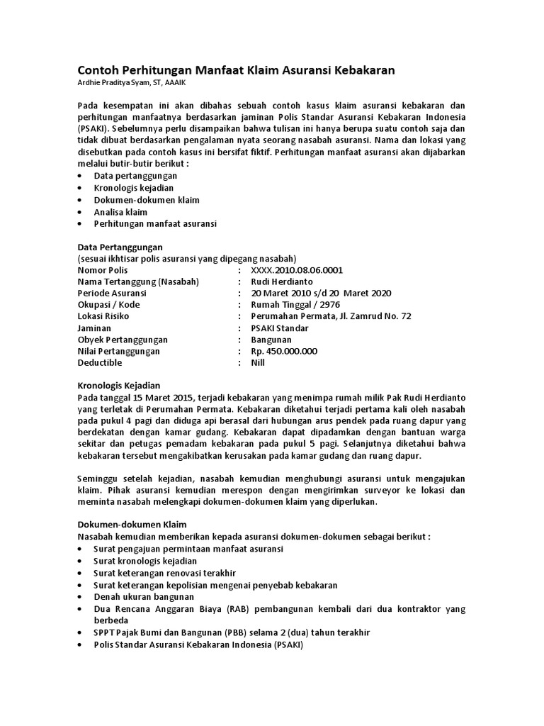 Contoh Perhitungan Klaim Kebakaran