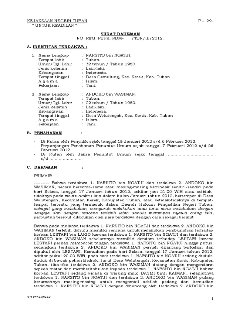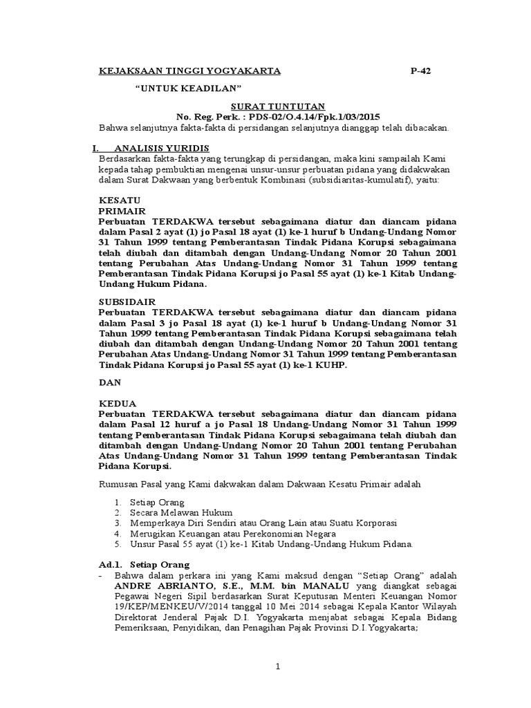 Contoh Surat Dakwaan Primer Subsider Download Kumpulan Gambar