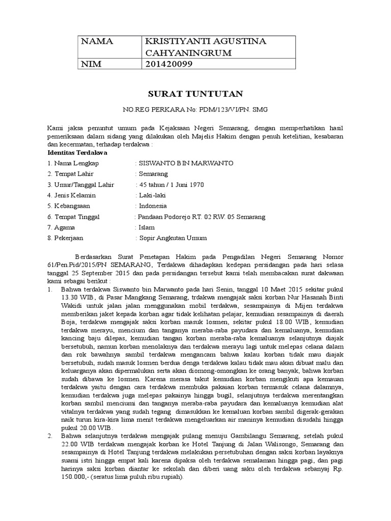 Doc Contoh Surat Tuntutan Peradilan Pidana Nada S Salsabila Academia Edu