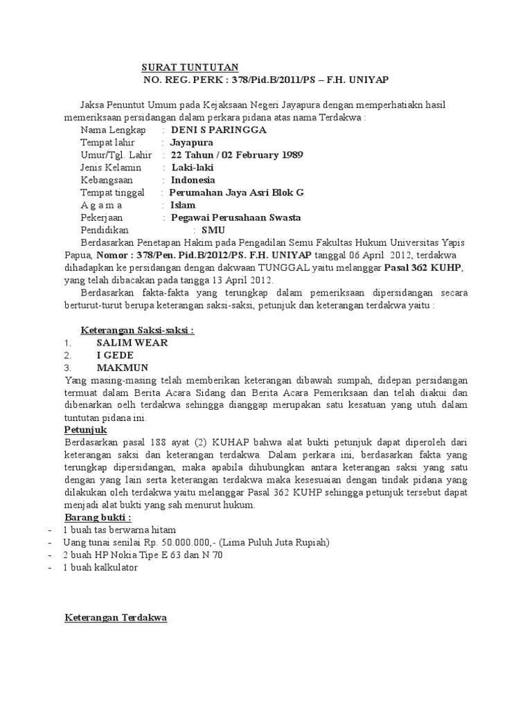 Contoh Surat Tuntutan Pidana Pencurian Pdf