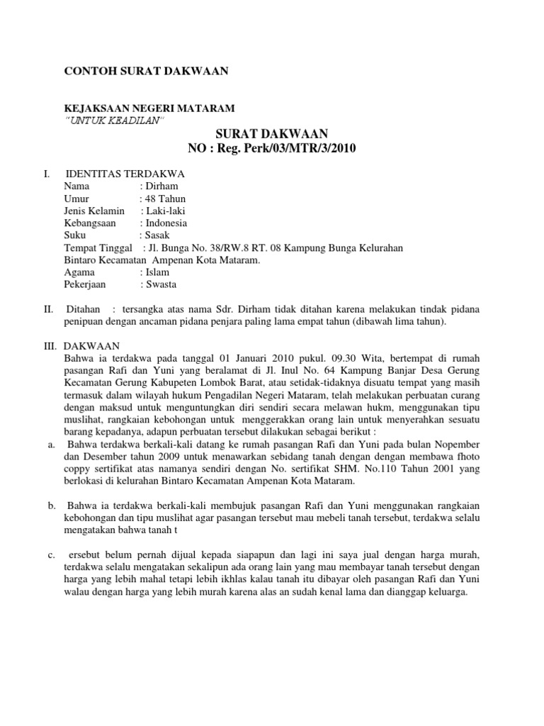 Contoh Surat Dakwaan Asli Download Kumpulan Gambar