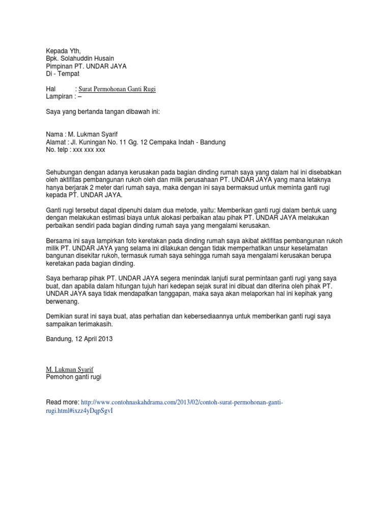 Surat Rasmi Permohonan Ganti Rugi Contoh Adat Cute766