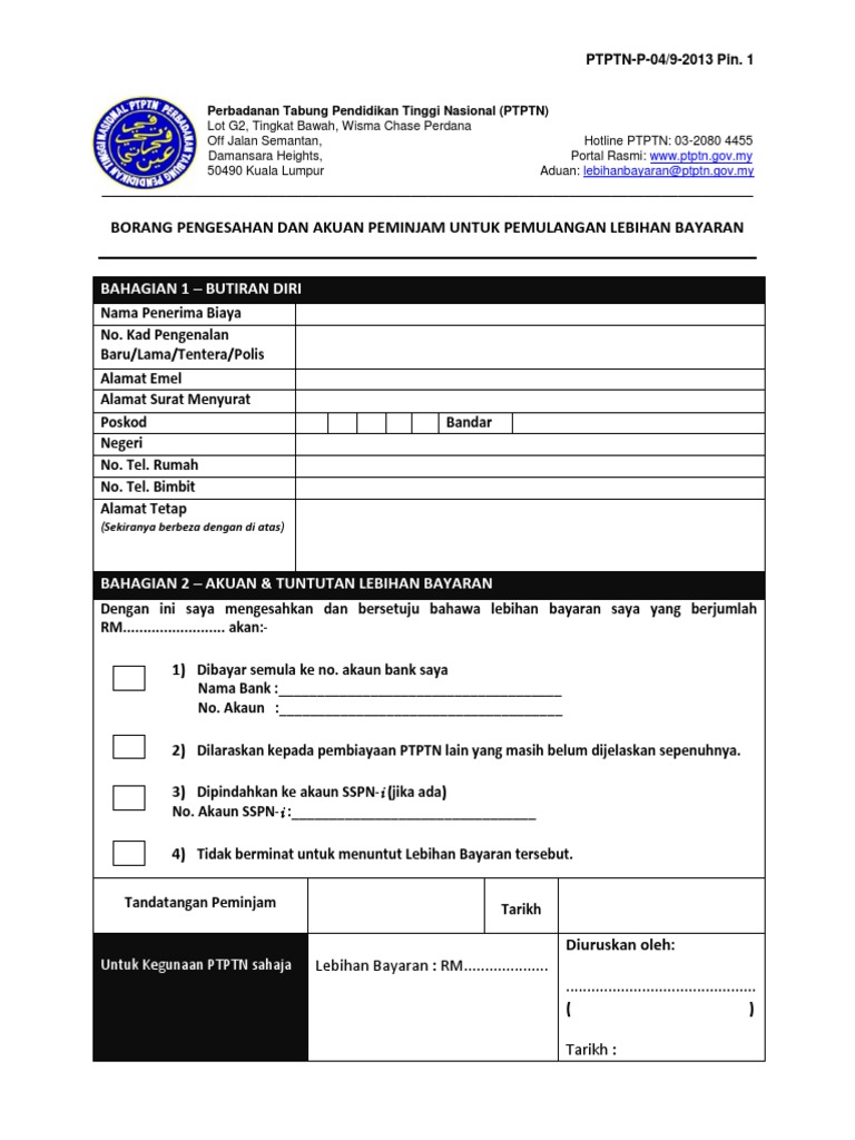 Ptptn Borang Tuntutan Lebihan Bayaran