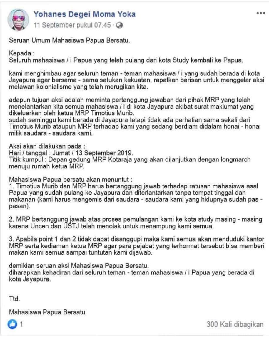 Veronica Koman On Twitter 12 9 19 Yapen West Papua More Than 60 People Signed A Statement That They Will Not Recognize Police S Rejection Letter And Will Take To The Streets Anyway On 16 9 19