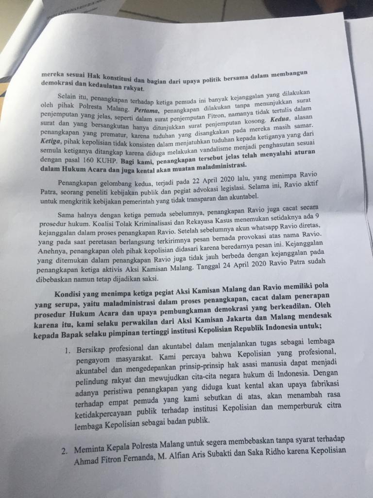 Aksi Kamisan On Twitter Kami Akan Mengirimkan Surat Tuntutan Pembebasan Aktivis Aksi Kamisan Malang Yang Ke Presiden Jokowi Sebagai Surat Aksi Kamisan 633 Isi Surat Bisa Dibaca Di Sini Https T Co Krviaymyk8