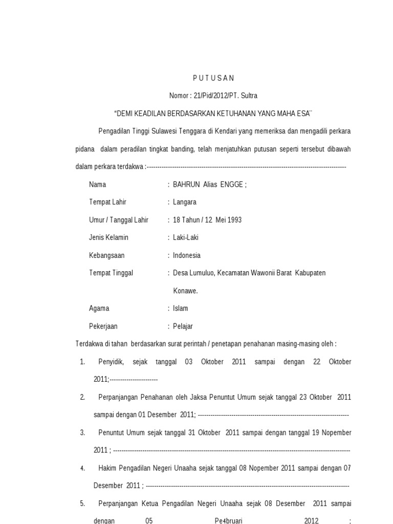 Contoh Surat Putusan Hukum Pidana Contoh Surat