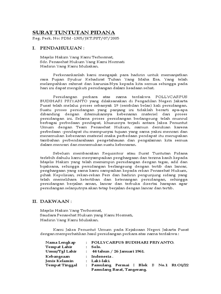 Contoh Surat Tuntutan Pidana Page 1 Line 17qq Com